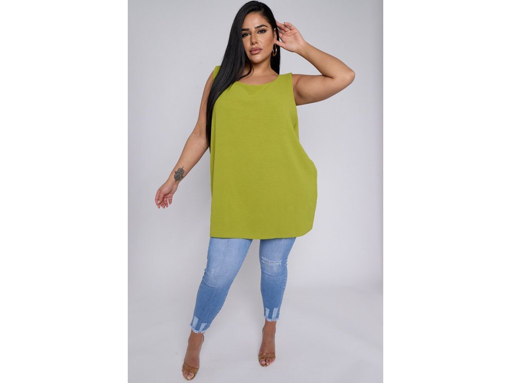 Top bez rukávů s kulatým výstřihem - barva olivová